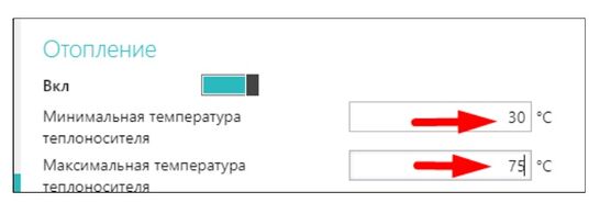 ВНИМАНИЕ!!! Котел при управлении в Псевдорелейном режиме нагревает теплоноситель до значения максимальной температуры, заданной настройкой "Цифровая шина - Отопление", и затем остывает до минимальной температуры, заданной этой же настройкой.