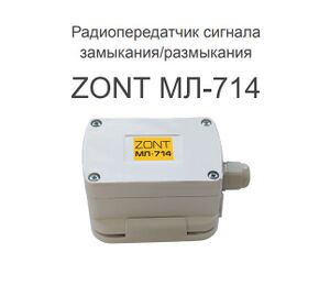 Радиопередатчик сигнала размыкания/замыкания МЛ-714 (далее Радиопередатчик) имеет гермоввод для подключения любых дискретных датчиков с выходом типа "сухой контакт" (например, поплавковый датчик уровня жидкости, датчик размыкания/замыкания, датчик открытия калиток и т.п) и предназначен для получения сигнала о замыкании/размыкании "сухого контакта" от подключенного датчика, с последующей ретрансляцией данных на радиомодуль ZONT МЛ-590.