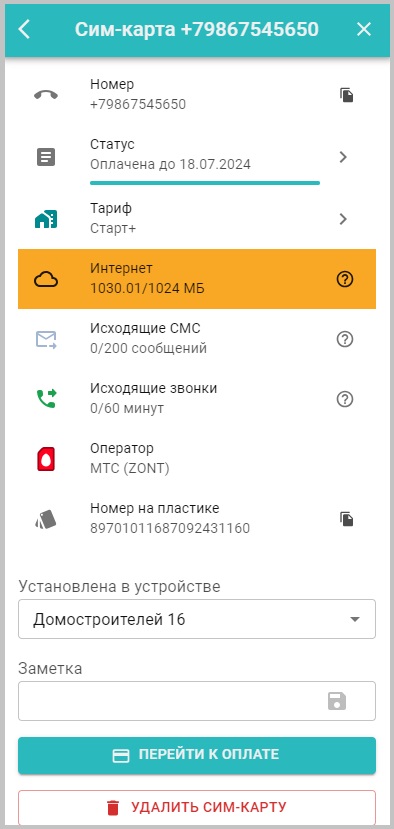 Информация о сим-карте МТС