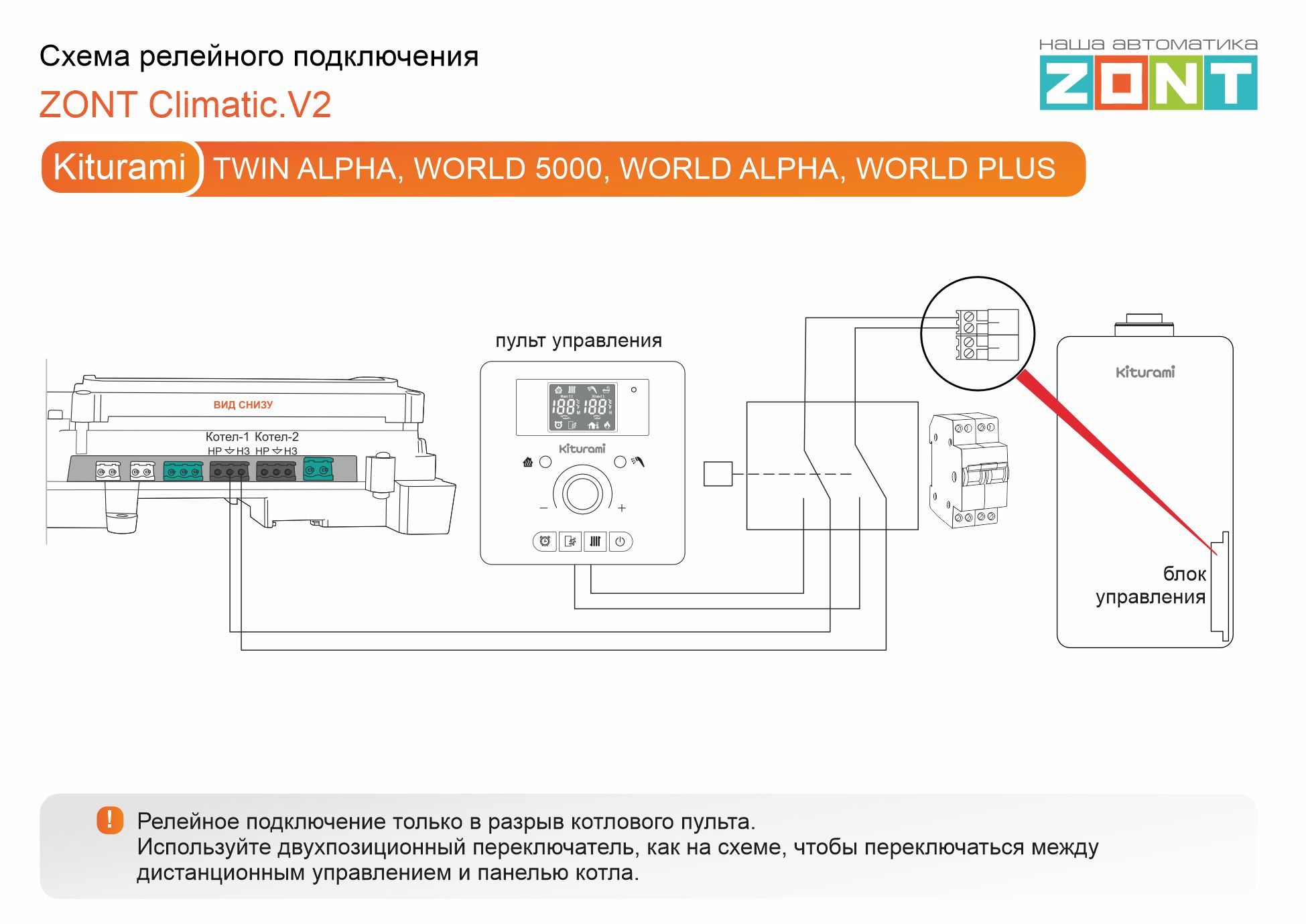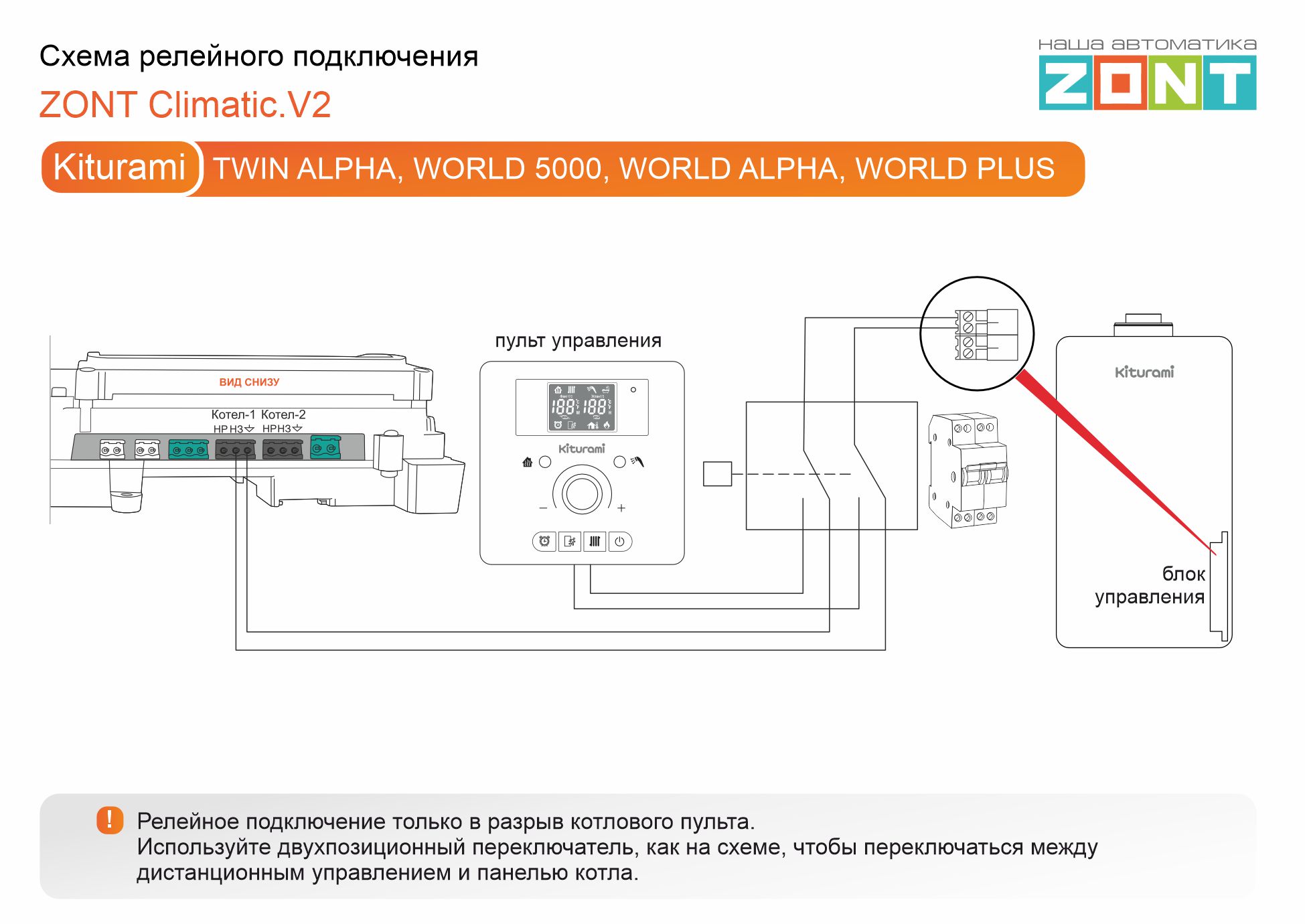 Kiturami Twin Alpha - релейное подключение Climatic.V2