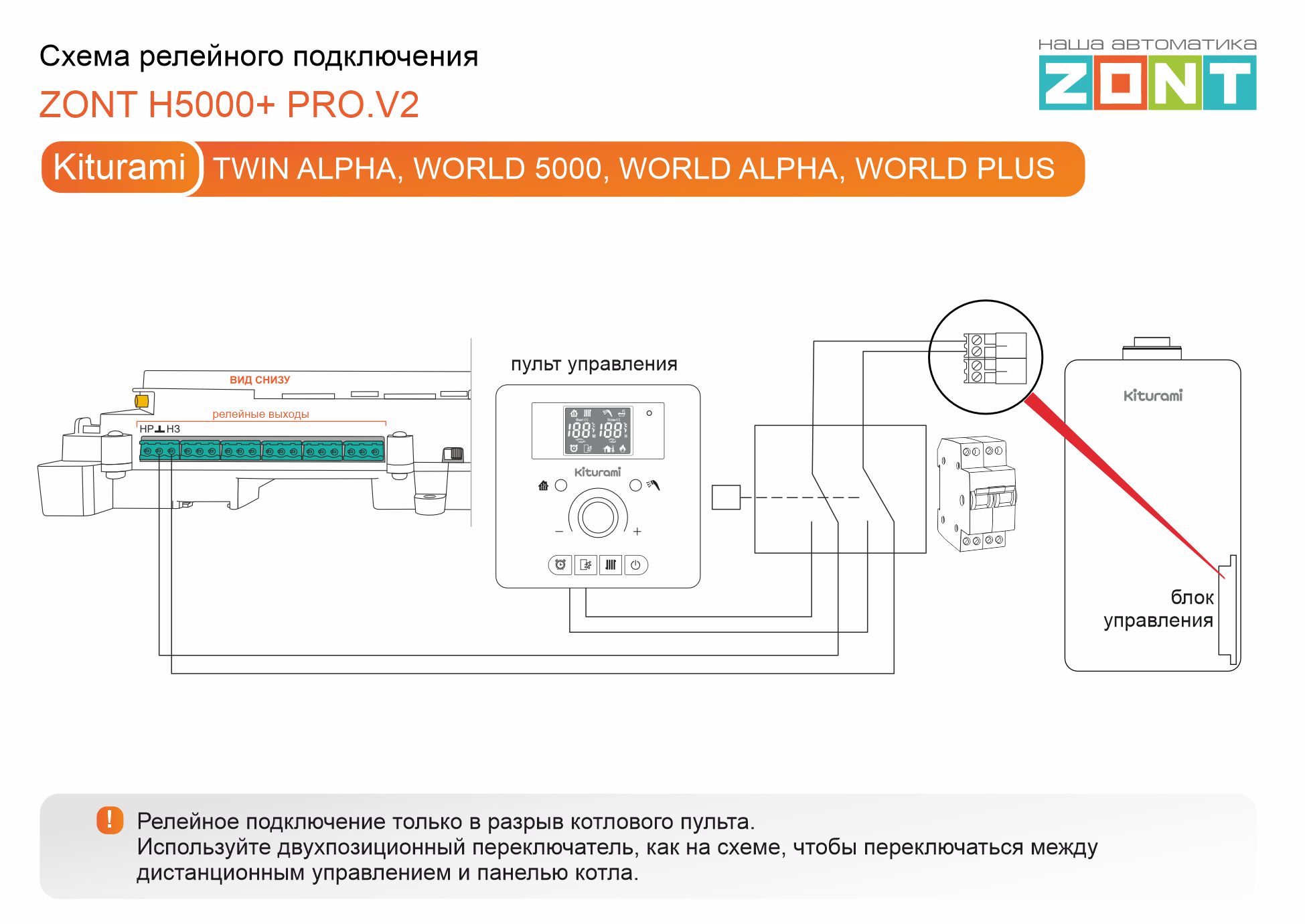 Kiturami Twin Alpha - релейное подключение H5000+PRO.V2