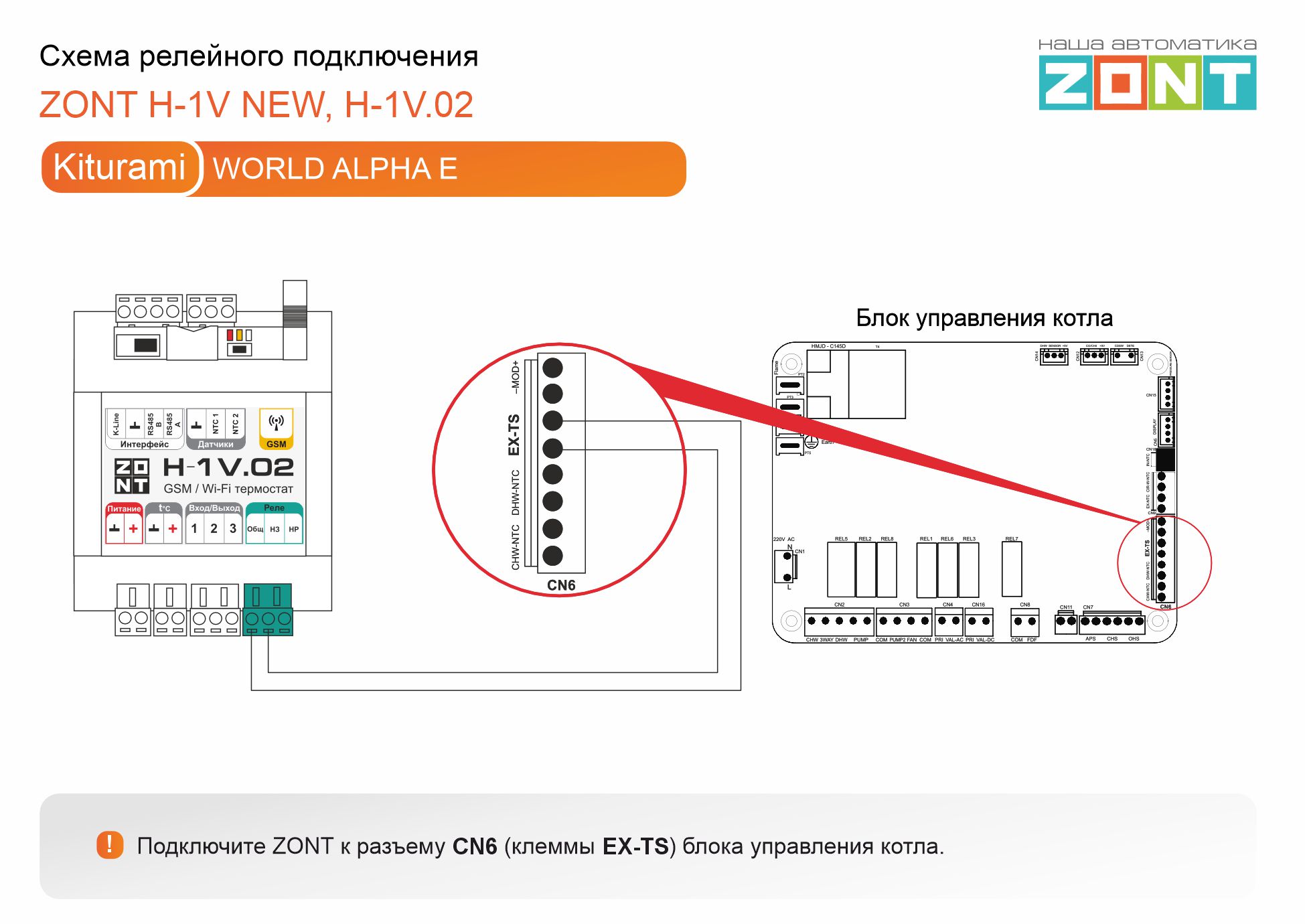 Kiturami World Alpha E - релейное подключение H-1V new, H-1V.02