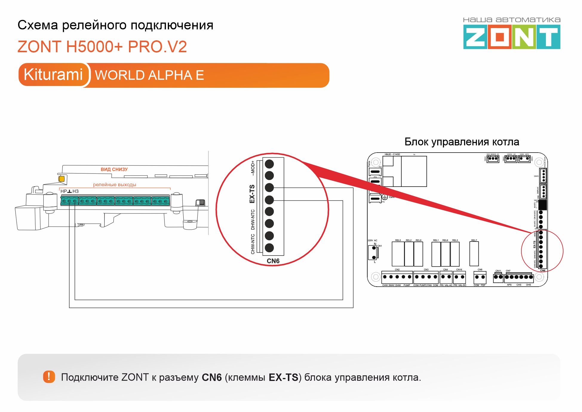 Kiturami World Alpha E - релейное подключение H5000+PRO.V2