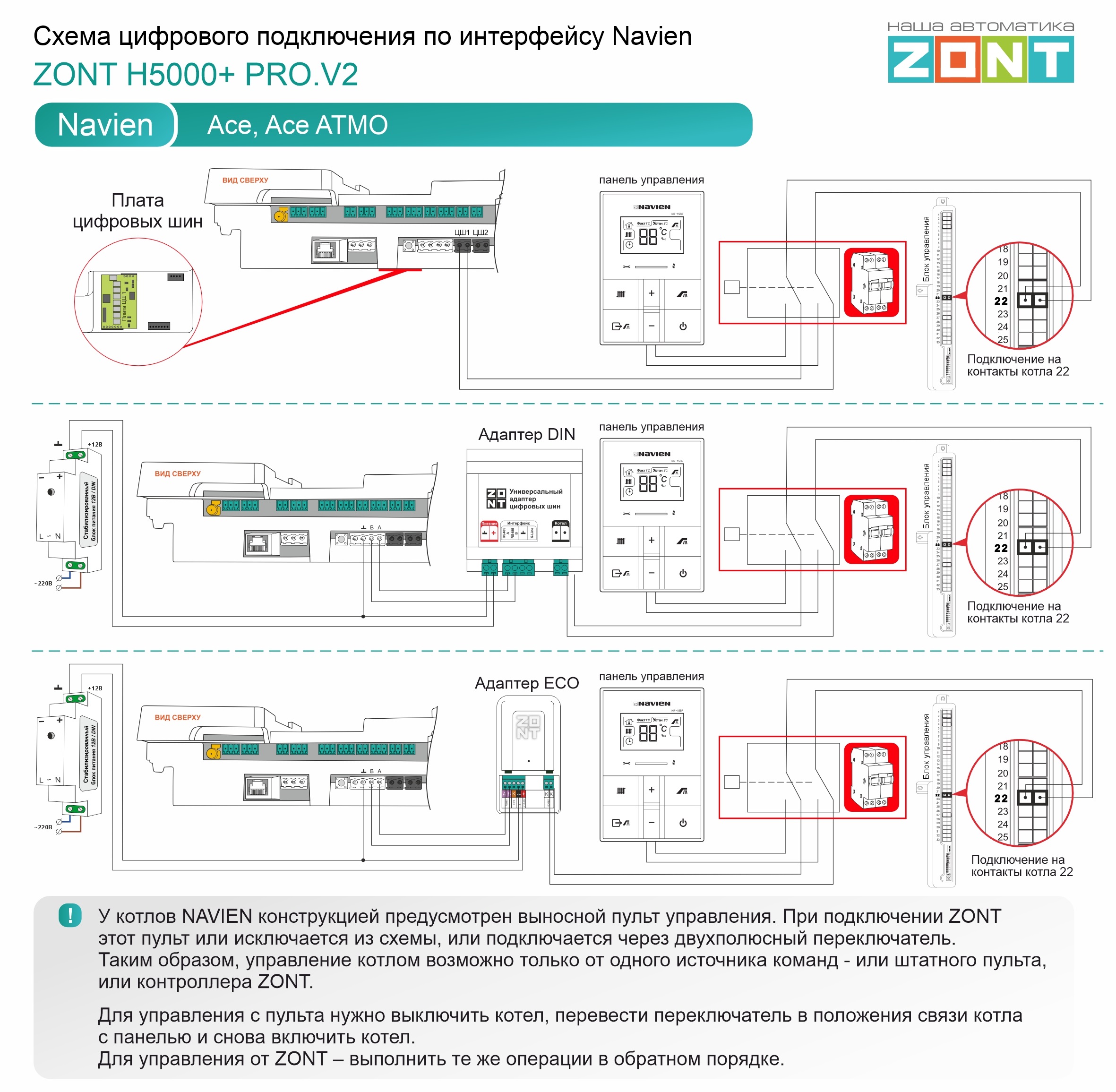 Navien Ace - цифровое подключение H5000+ PRO.V2 PlataDinEco