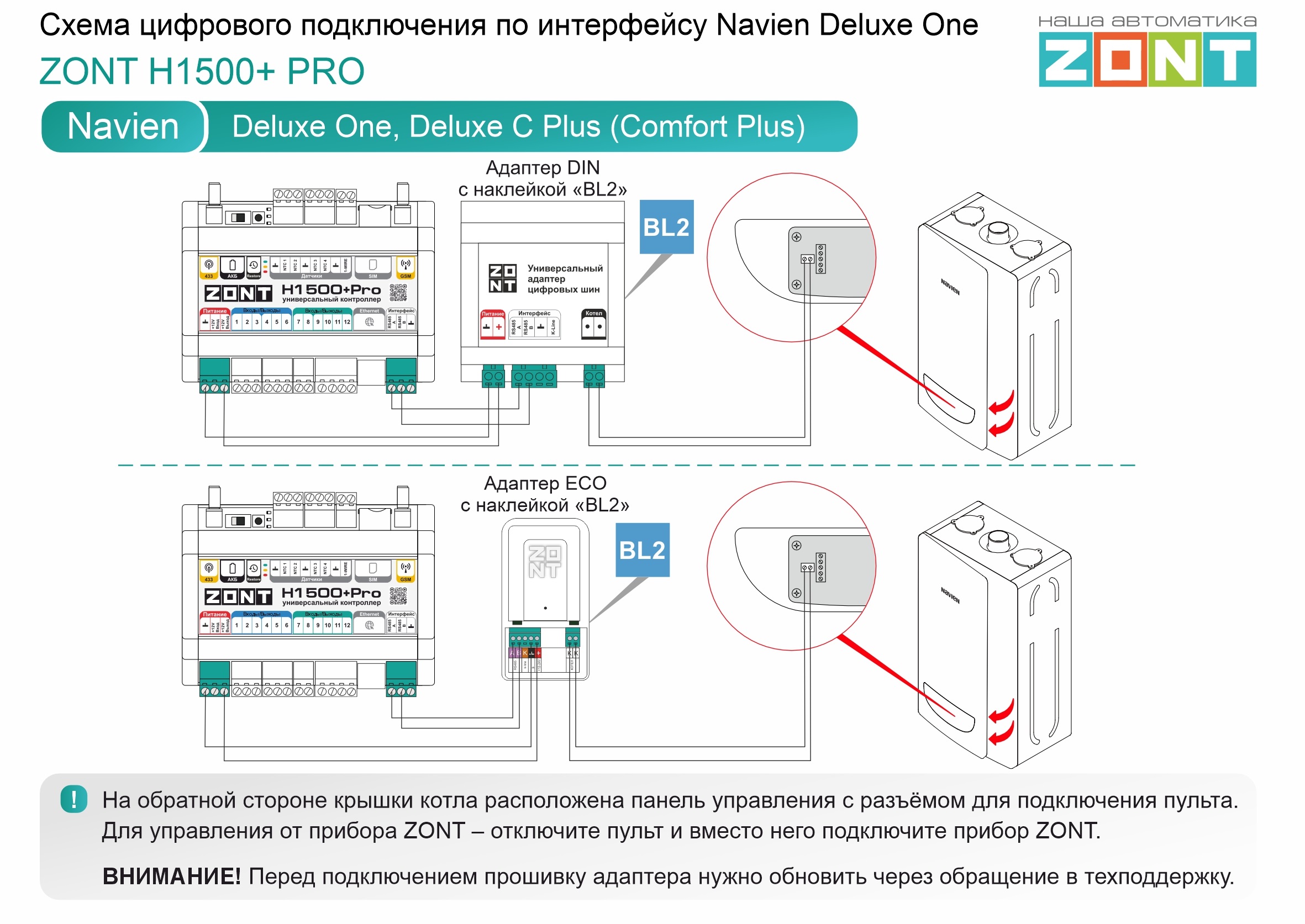 Navien Deluxe One - цифровое подключение H1500+ PRO DinEco