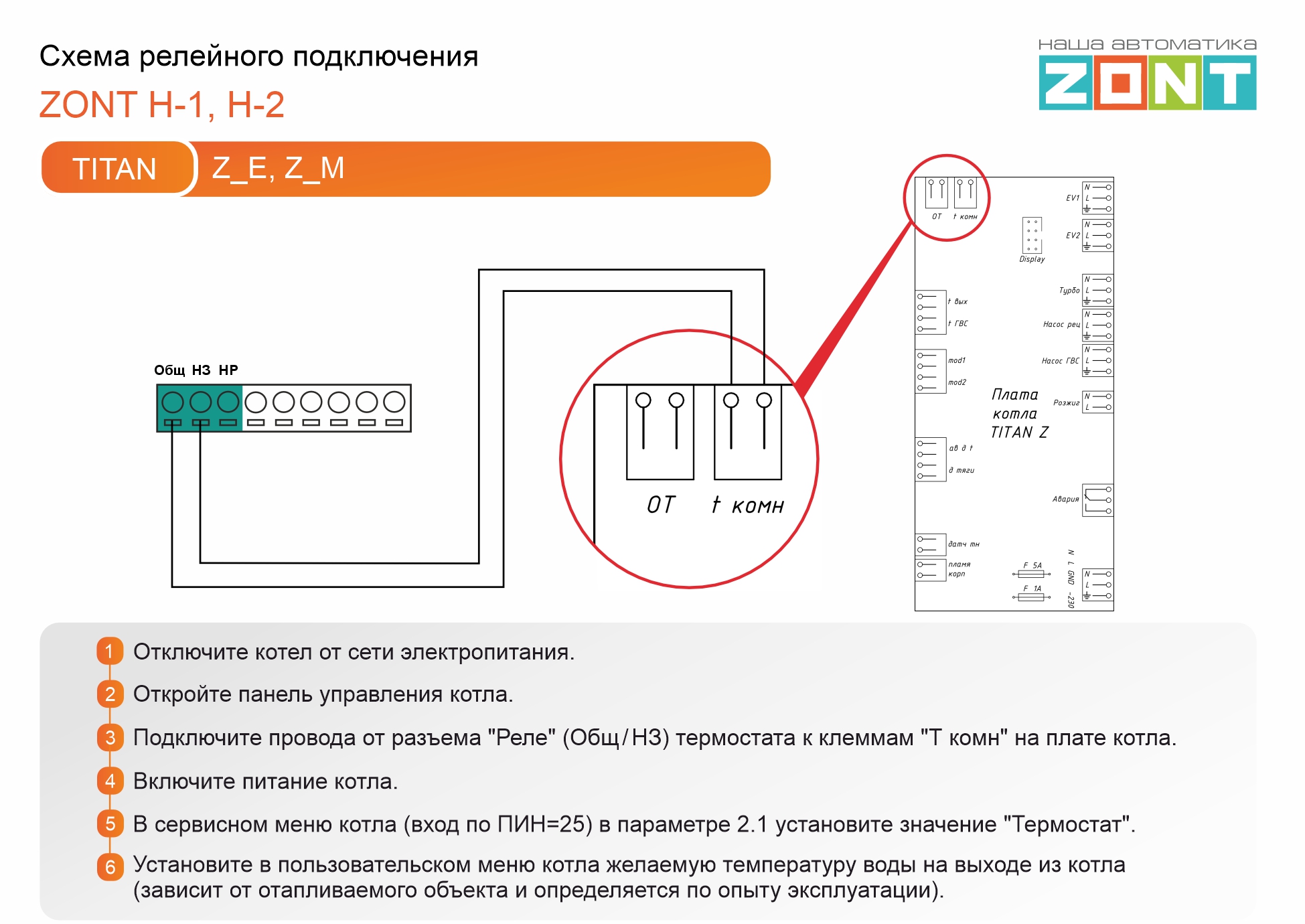 Titan Z E, Z M - релейное подключение H-1, H-2