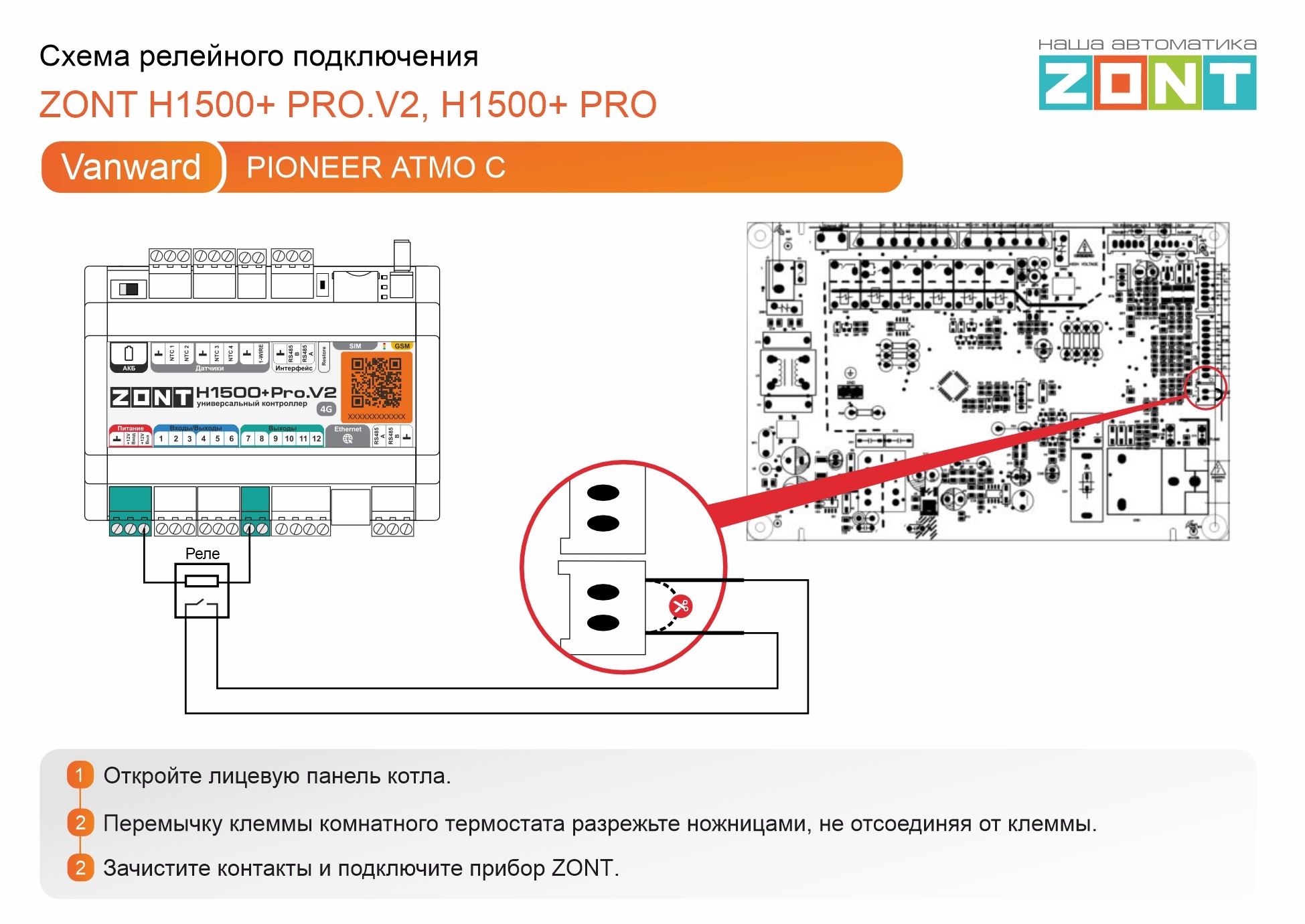 Vanward Pioneer Atmo C - релейное подключение H1500+PRO