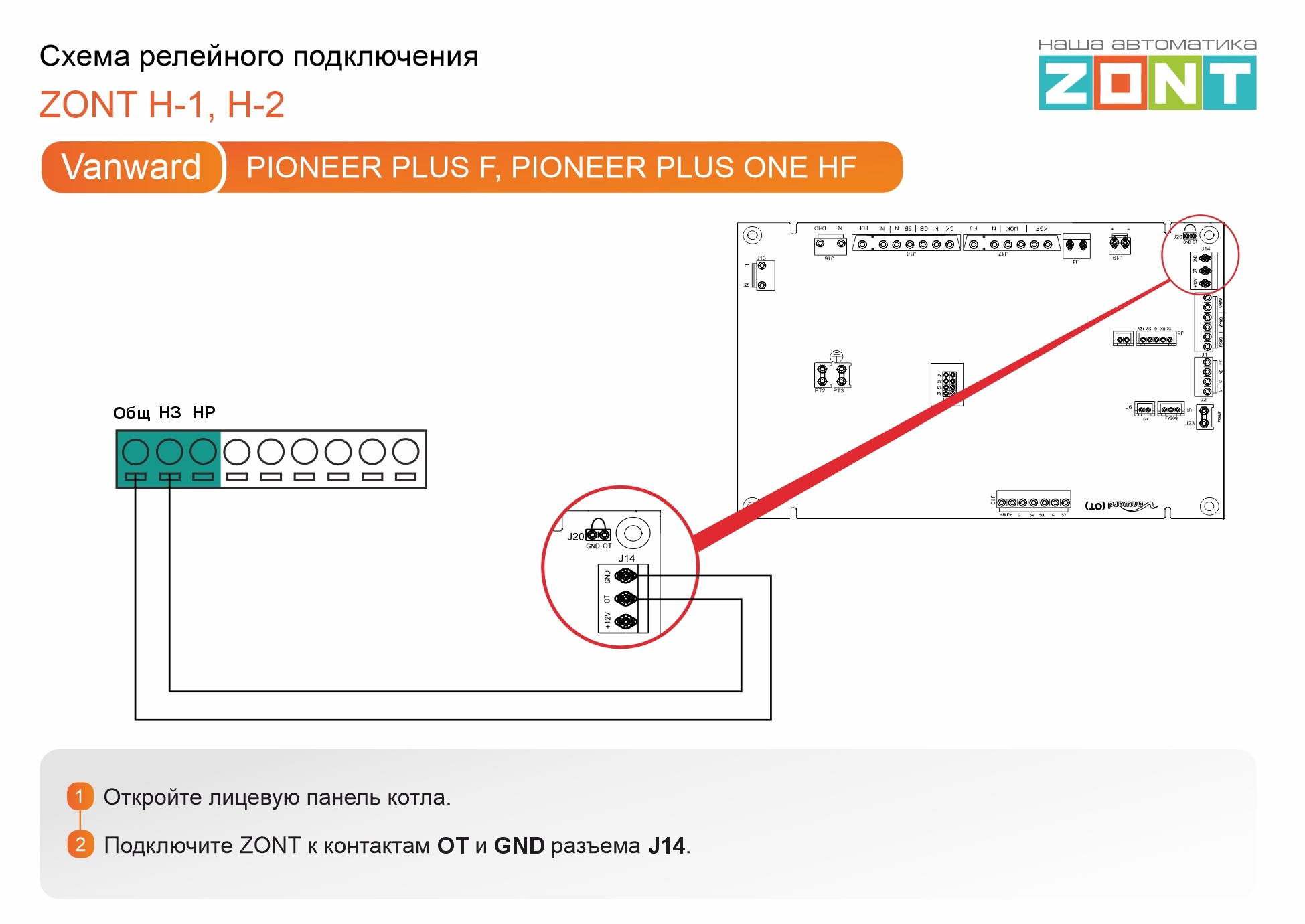 Vanward Pioneer PLUS F, ONE HF - релейное подключение H-1, H-2