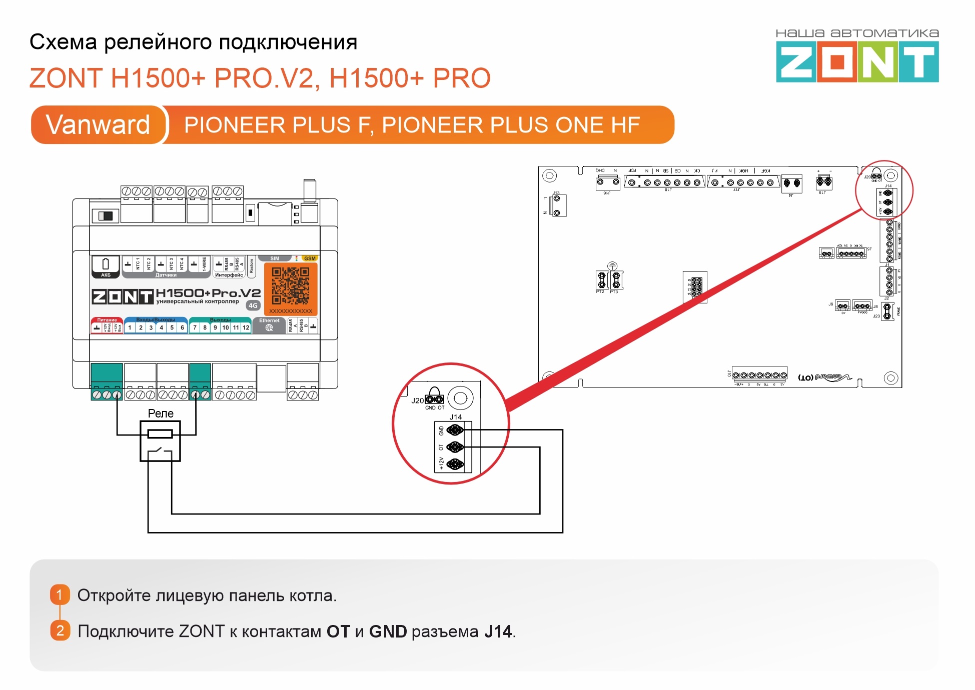 Vanward Pioneer PLUS F, ONE HF - релейное подключение H1500+PRO