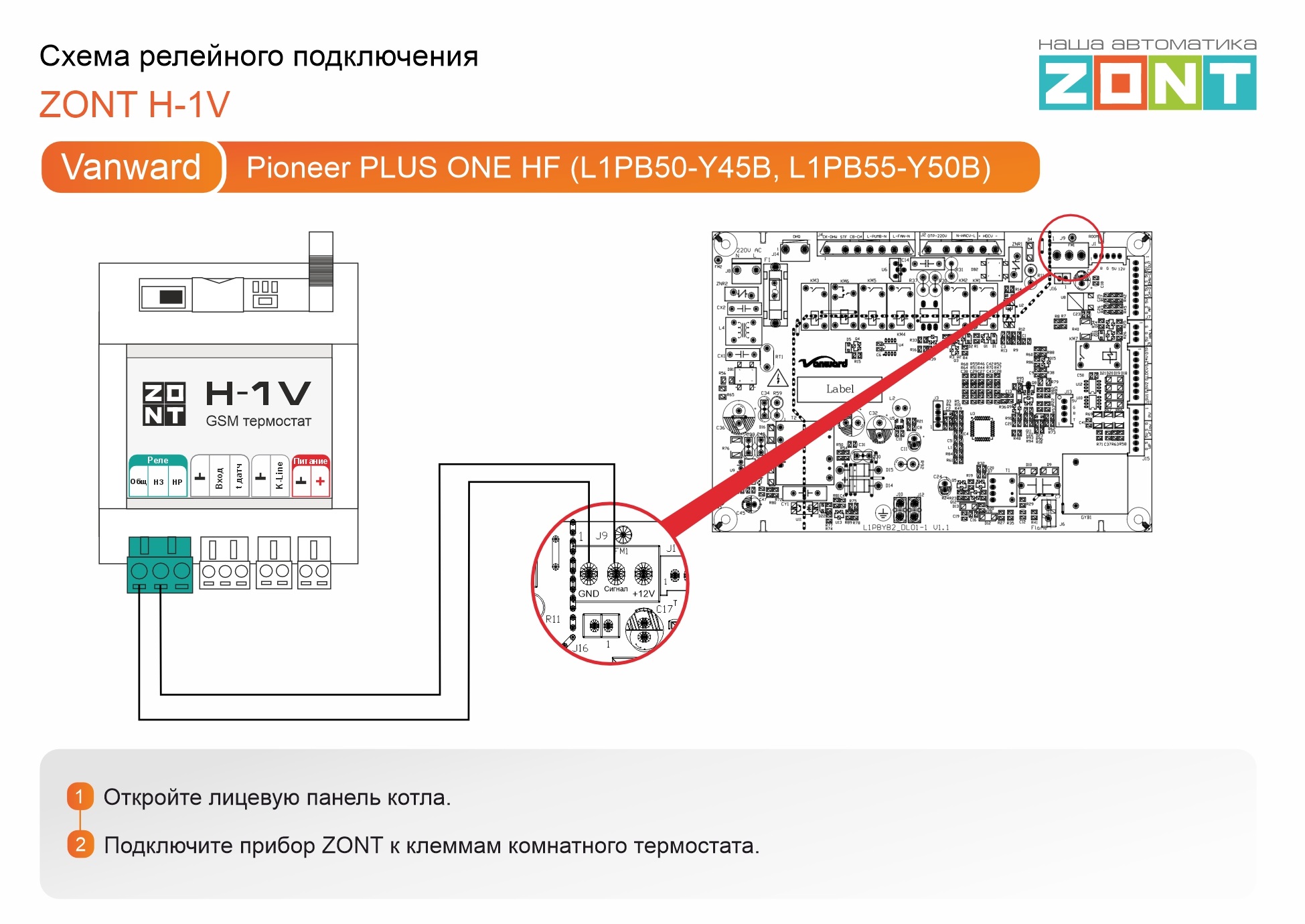 Vanward Pioneer PLUS ONE HF (L1PB50-Y45B, L1PB55-Y50B) - релейное подключение H-1V