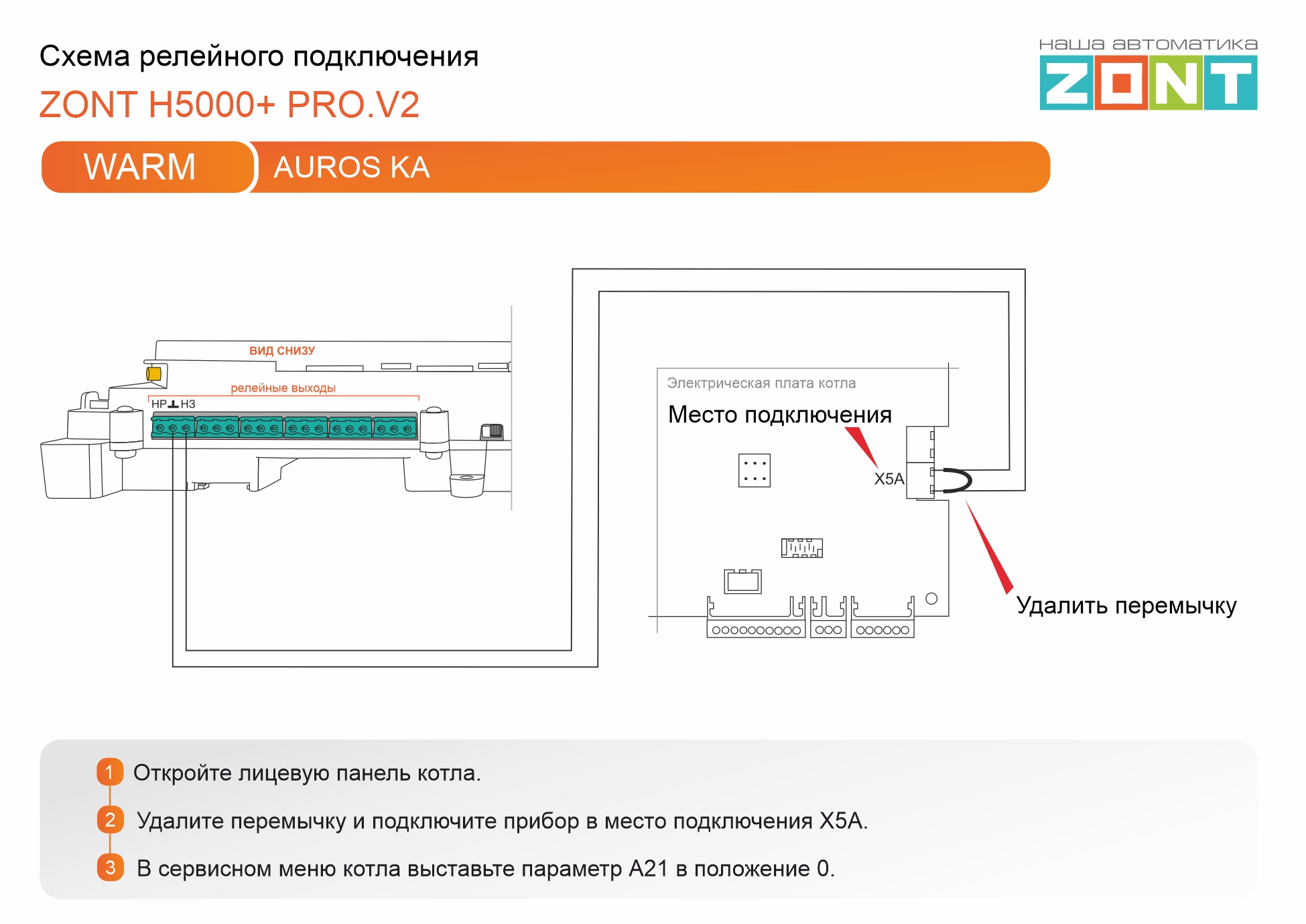 WARM AUROS KA - релейное подключение H5000+PRO.V2