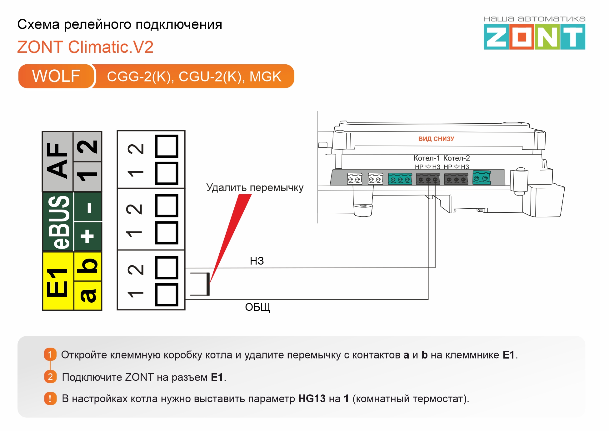 WOLF CGG-2(K), CGU-2(K), MGK - релейное подключение Climatic.V2