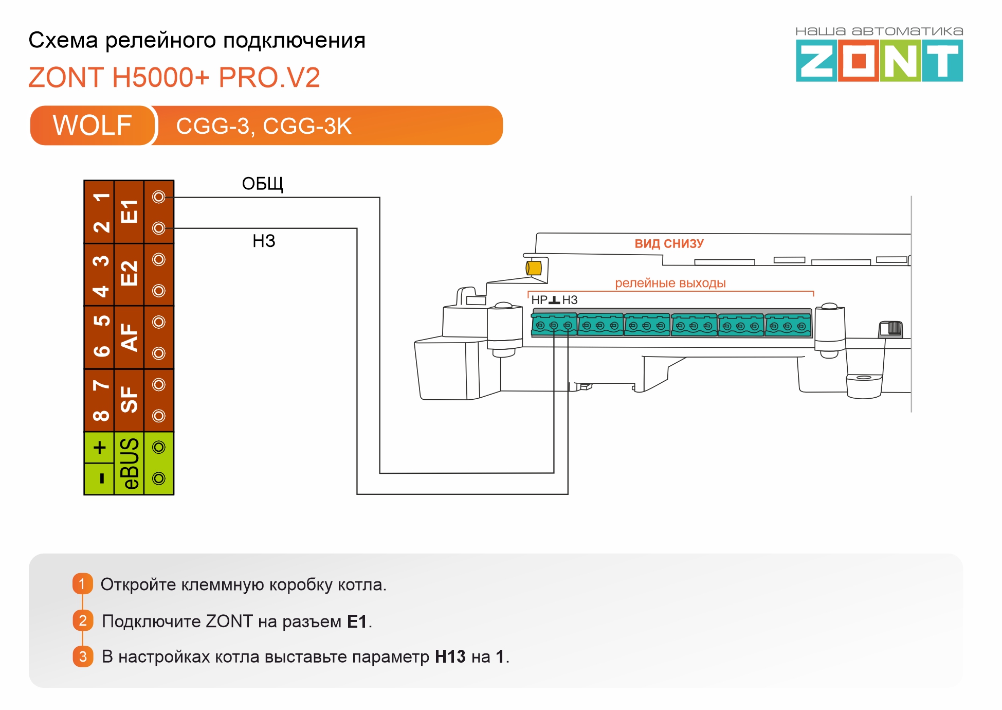 WOLF CGG-3, CGG-3K - релейное подключение H5000+ PRO.V2