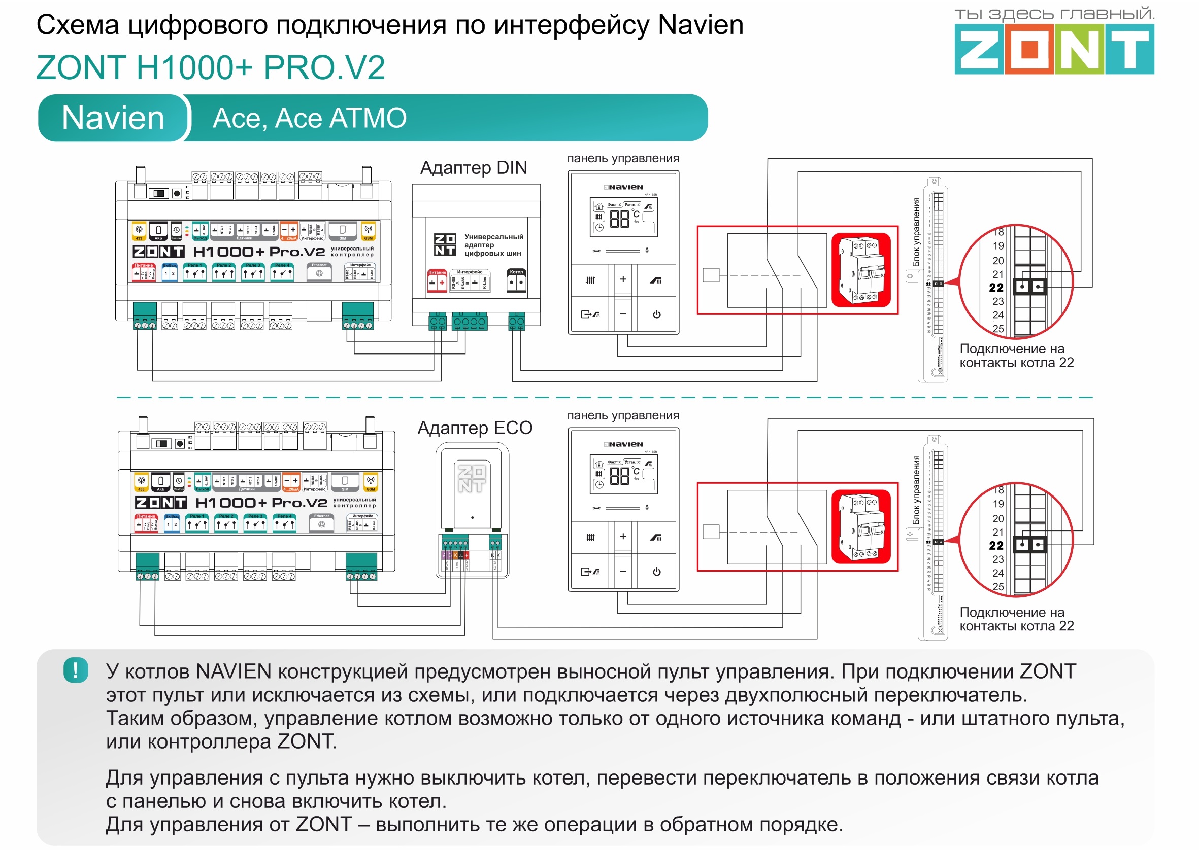 Navien Ace - цифровое подключение H1000+ PRO.V2 DinEco
