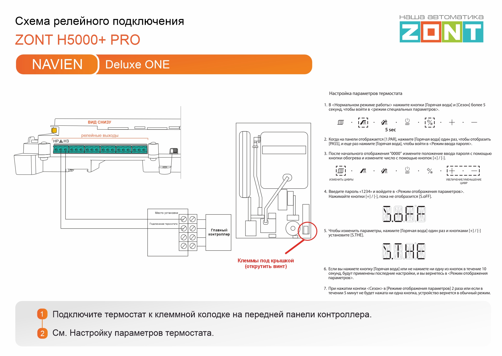 Navien Deluxe One - релейное подключение H5000+PRO.V2