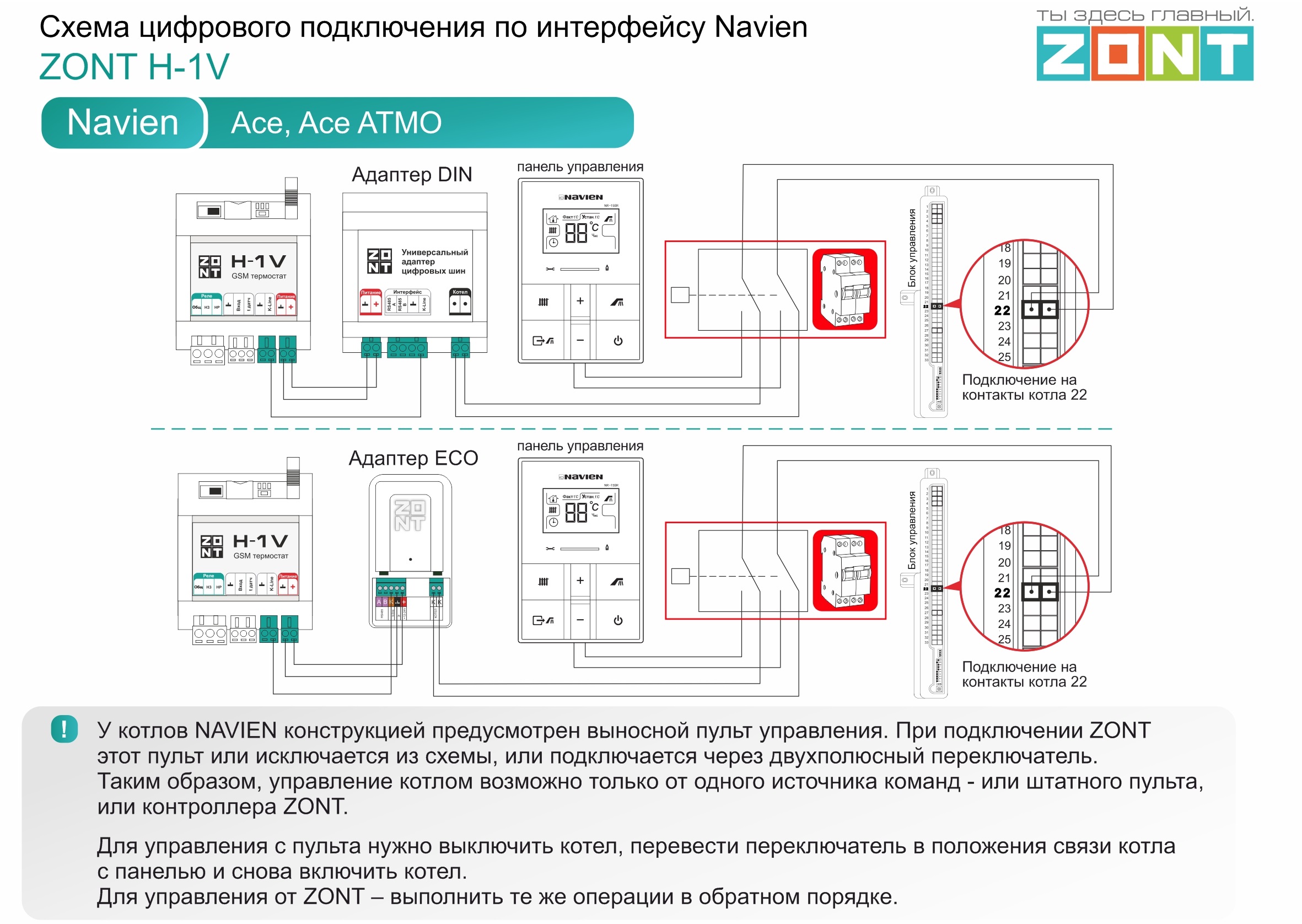 Navien Ace - цифровое подключение H-1V DinEco