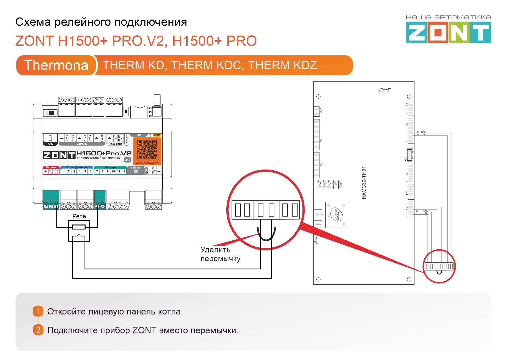 Thermona PREMIUM CONDENS - релейное подключение H1500+PRO